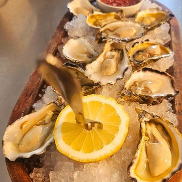 With honey lemon glaze and pickled veggies served with garlic Aioli . Contains Eggs and gluten. Can be GF free upon request